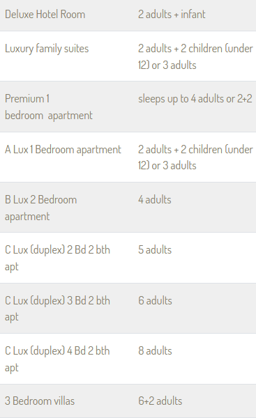 NB. BEFORE BOOKING all customers MUST read and view all room, suite, apartment and villa descriptions (and floor plans where provided), which are available on our website. This will ensure the suitability of the accommodation for couples, families groups etc. It is also the responsibility of the customer to advise of any special requirements (i.e. mobility, access issues etc…) prior to booking.