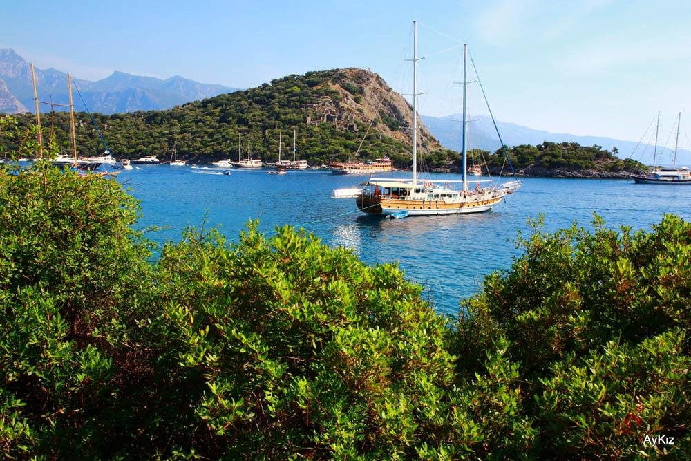 Gemiler Plajı muhteşem St. Nicholas Adası manzarası ile bozulmamış, güzel görünümlü bir koydur [adaya botla ulaşıp, harabeleri görebilirsiniz]. Birkaç sade restoran mevcuttur. Ölüdeniz’den gelinerek yüzülebilecek, şnorkelle dalınabilecek, yemek yenebilecek ve kestirilebilecek güzel bir günübirlik gezi yeridir.