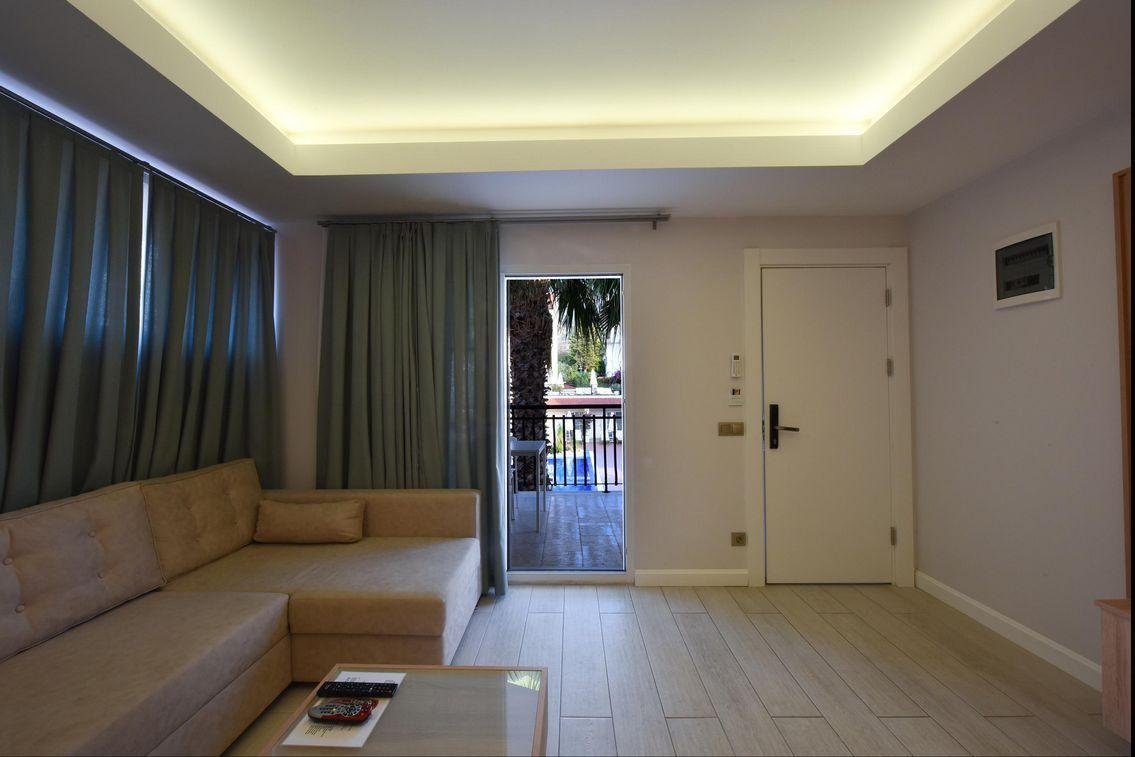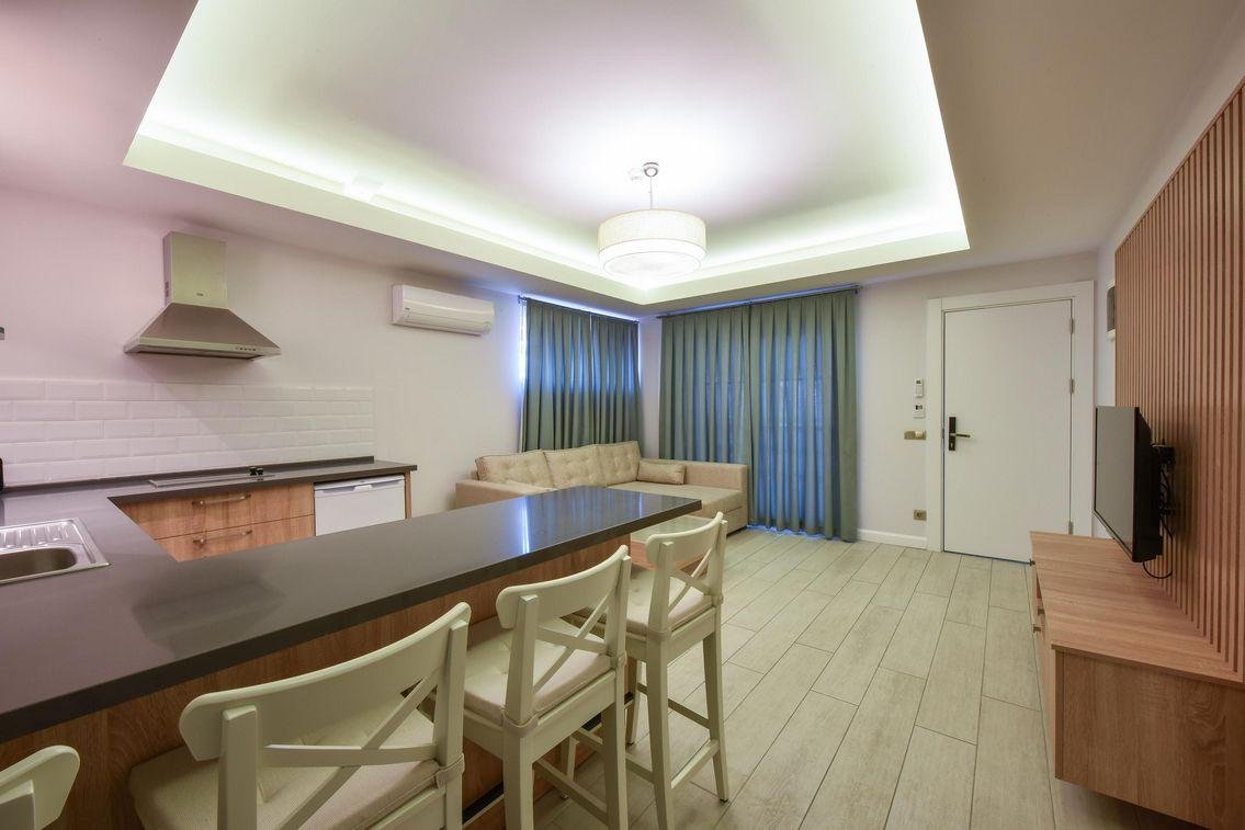 Bu şık, modern, self-catering apartlar süit rahatlığını ve ayrıcalıklarını sunar. Oturma odasında çift kişilik rahat çek yat, düz ekran televizyon, klima ve direk telefon bulunduğu gibi kahvaltı tezgâhının bulunduğu zarif ve tam donanımlı mutfağı da barındırır. Muhteşem banyosunda ikili duş, şıklığa şıklık katar. Klimalı yatak odasında bulunan büyük ve geniş yatak (2 tek kişilik yatak seçenekli) sizi ikinci düz ekran televizyonla karşılayacaktır. Masa ve sandalyeleriyle geniş ve kişiye özel balkonu havuz ve dağ manzarasına çekecektir.